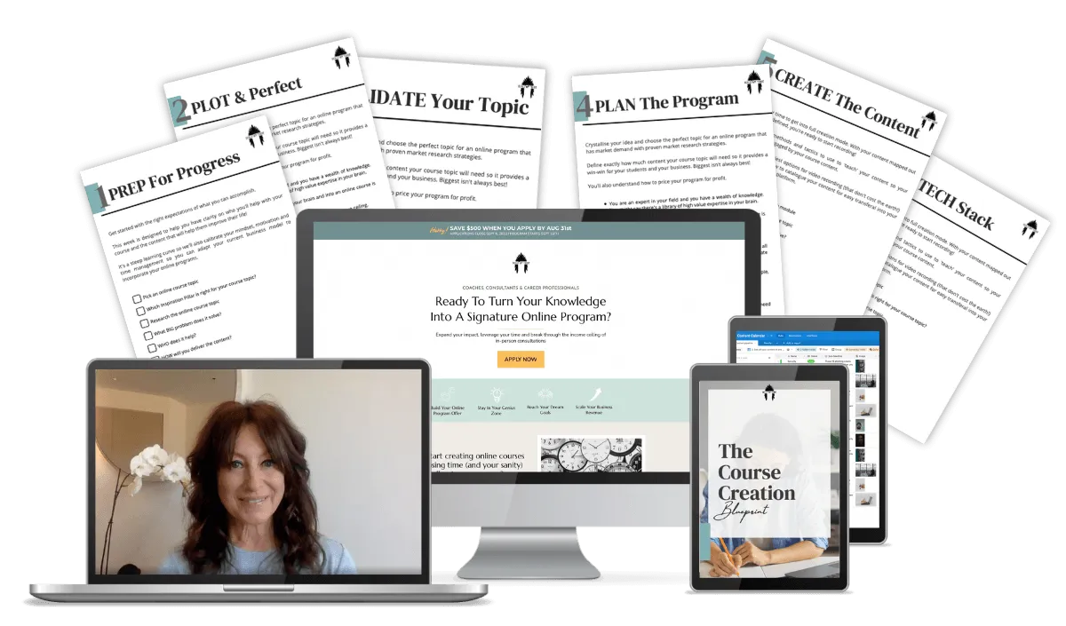 This highly practical 8-week group coaching immersion is designed to help you take action with step-by-step support and guidance to create a highly marketable online program without all the tech overwhelm.